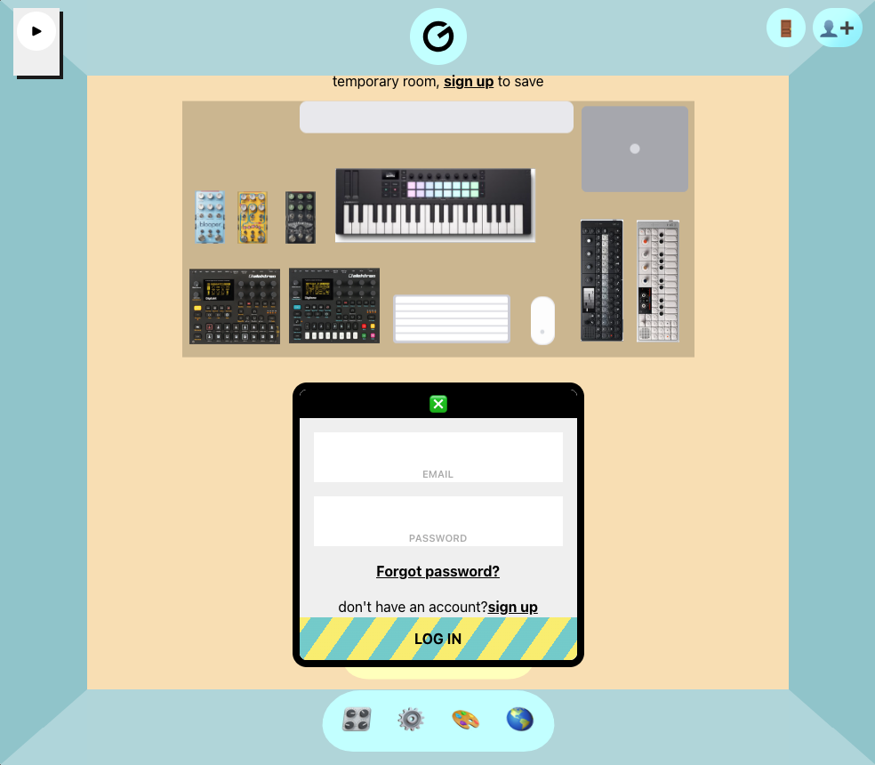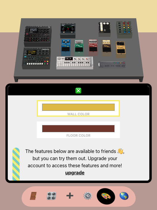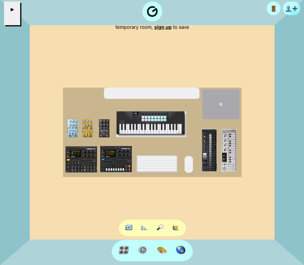 Set the room to match your home studio space. Customize the floor and walls, add speakers or add a YouTube link to enable the music player.