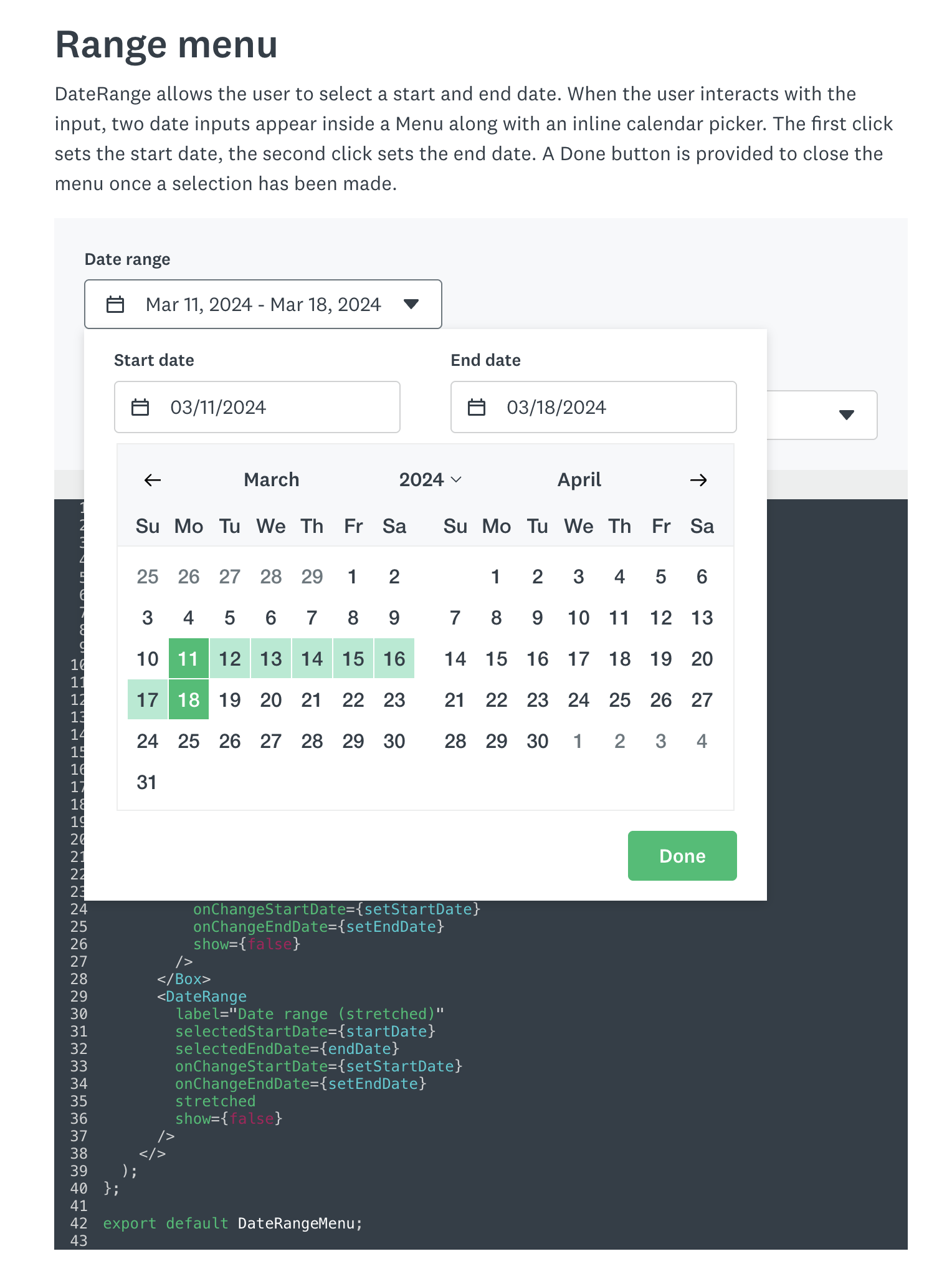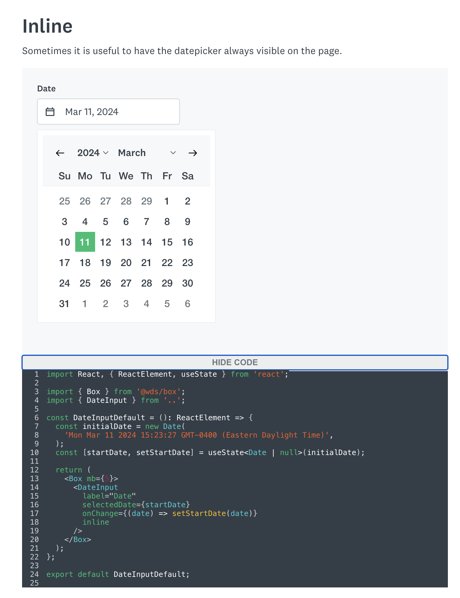 Date picker component