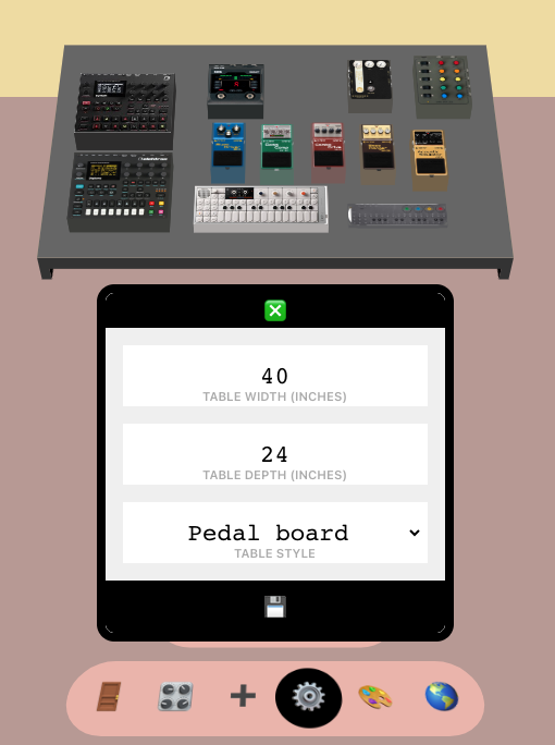 Thinking about adding another gear item to your setup? Shift things around and see what you have room for. Gearspace is great for organizing your a desk, table or pedal board.