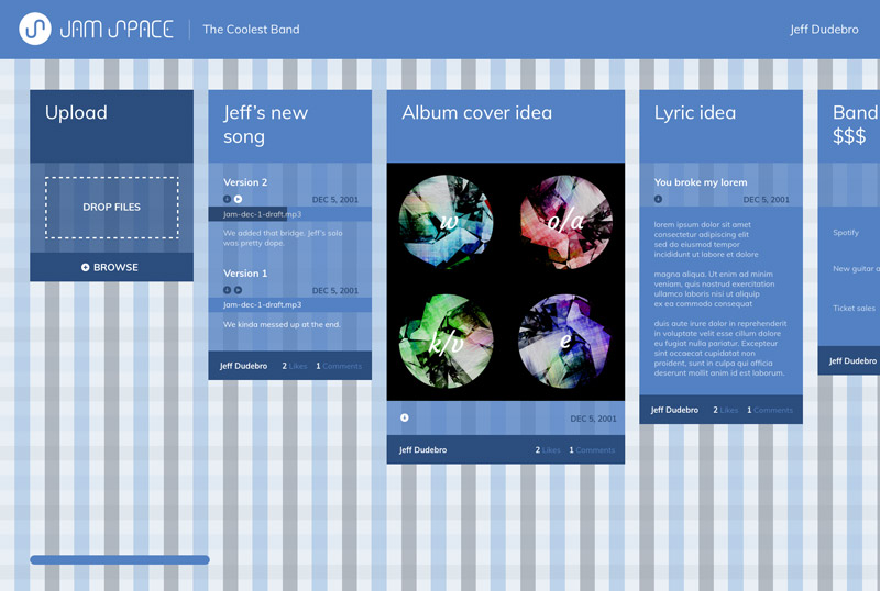 A band file sharing site I created a while back so some old bandmates and I could share and discuss things we were working on. A custom theme and plugin for WordPress.